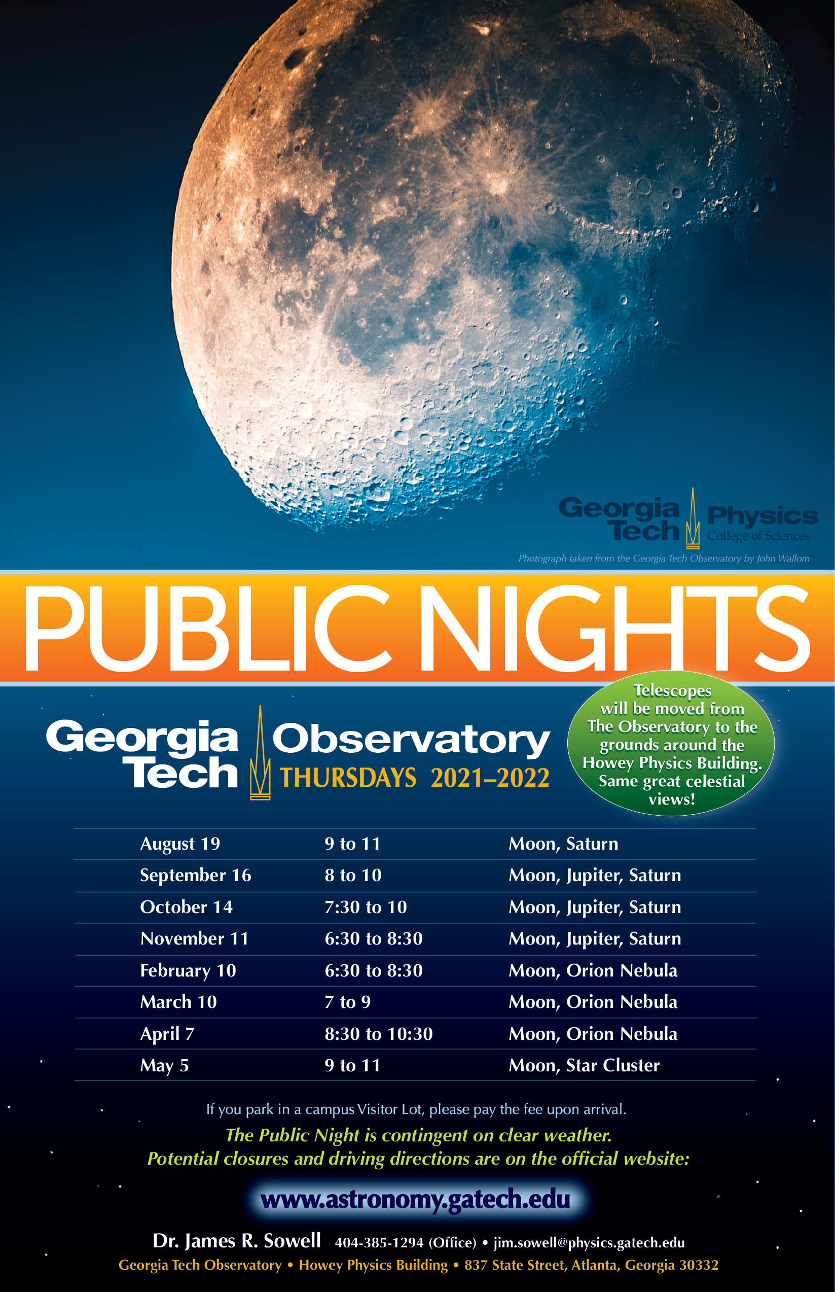 Public nights at the Georgia Tech Observatory are back for 2021-2022!